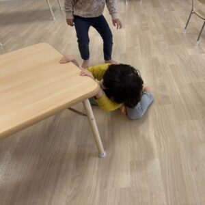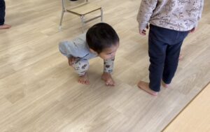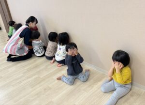 宝探し遊びでは、保育士がお宝を隠している間