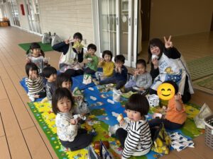 2歳児・すみれ組では、園内でピクニックごっこをしました。