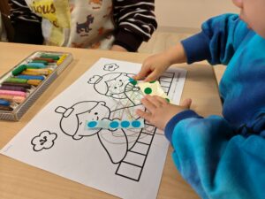いっぱいシール貼れたね!(これは後に、子どもたちが遊ぶコマになります😊)