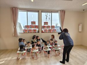 3・4・5歳児さんは節分にちなんだ絵本をみんなで見ました。