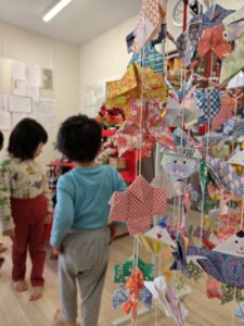 0歳児さんのお部屋には、かわいい鬼があちこちに…