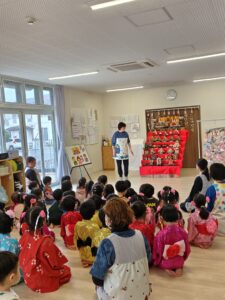 ひな祭りの由来をパネルシアターで楽しく見ることができました。