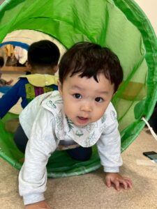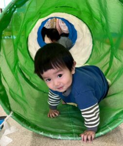 トンネルを進んだら、大好きな保育士が待っていて…嬉しそうな表情です😊