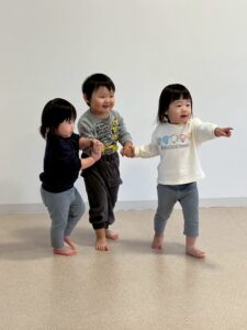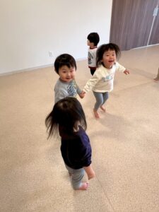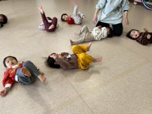この日は1歳児さんがリズム運動を楽しんでいました。
