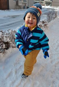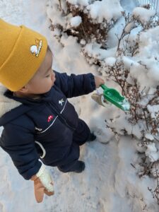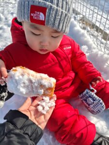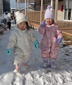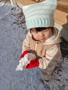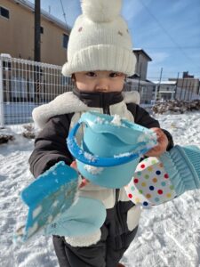 最近は雪が積もり、1歳児さんは念願の雪遊びを楽しむことができました。
